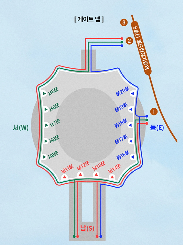 경기장이 너무 크다보니 구역별로 입장권을 발권합니다. 구역별 입장 티켓이 다르니 자신의 좌석을 잘 확인하셔서 입장하세요!