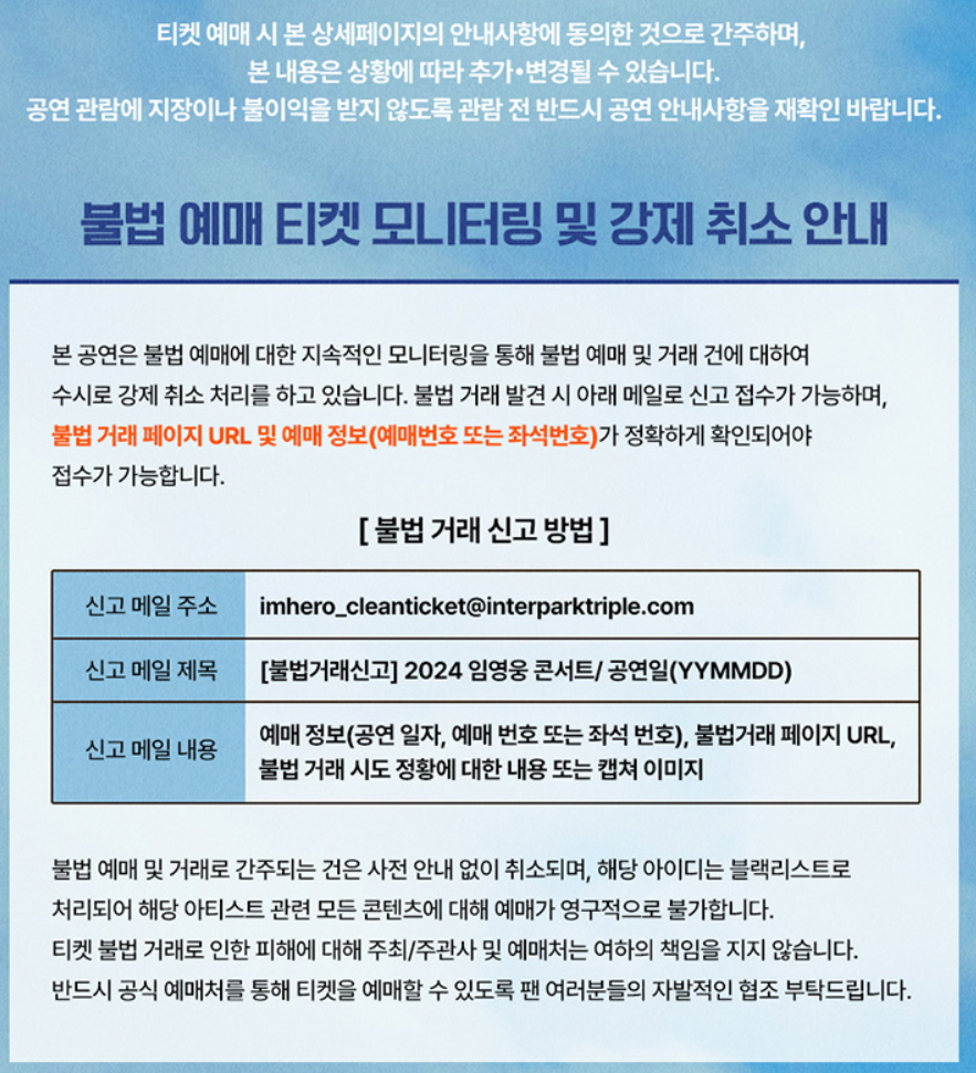 티켓팅 부정거래관련하여 프로그램으로 잡힌 분이 34개 정도 된다고 소명을 요구하는 메일을 발송했다고 하네요. 프로그램으로도 잡을 수 있다니.. 최첨단의 세상입니다...만.. 그래도 암표 거래하시는 분들도 있을 수 있으니 표 구매시 참고하셔요!