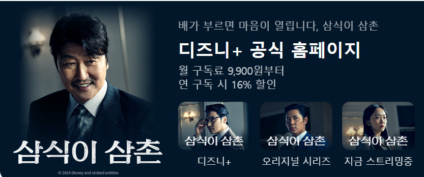 | [삼식이삼촌] 송강호 첫 드라마! 거대 제작비. 디즈니+ (2) | 2024.05.16 |